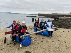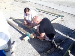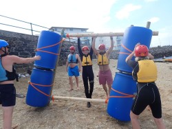 Your team is given the basic set of equipment needed; ropes, poles and plastic barrels. You then need to work as a team to design and build your raft. Once your raft is built, you will launch your vessel (which may or may not fall apart) and paddle around a course laid out by your instructor.